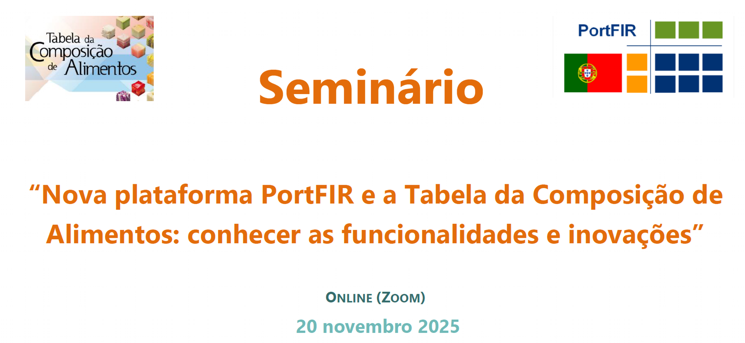Já está disponível no Youtube o webinar “Nova plataforma PortFIR e a Tabela de Composição de Alimentos: conhecer as funcionalidades e inovações”.